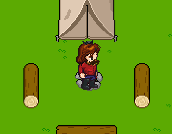 Collect logs by walking up to them and feeding the campfire so that it doesn't run out of fuel. If the campfire runs out, you lose.